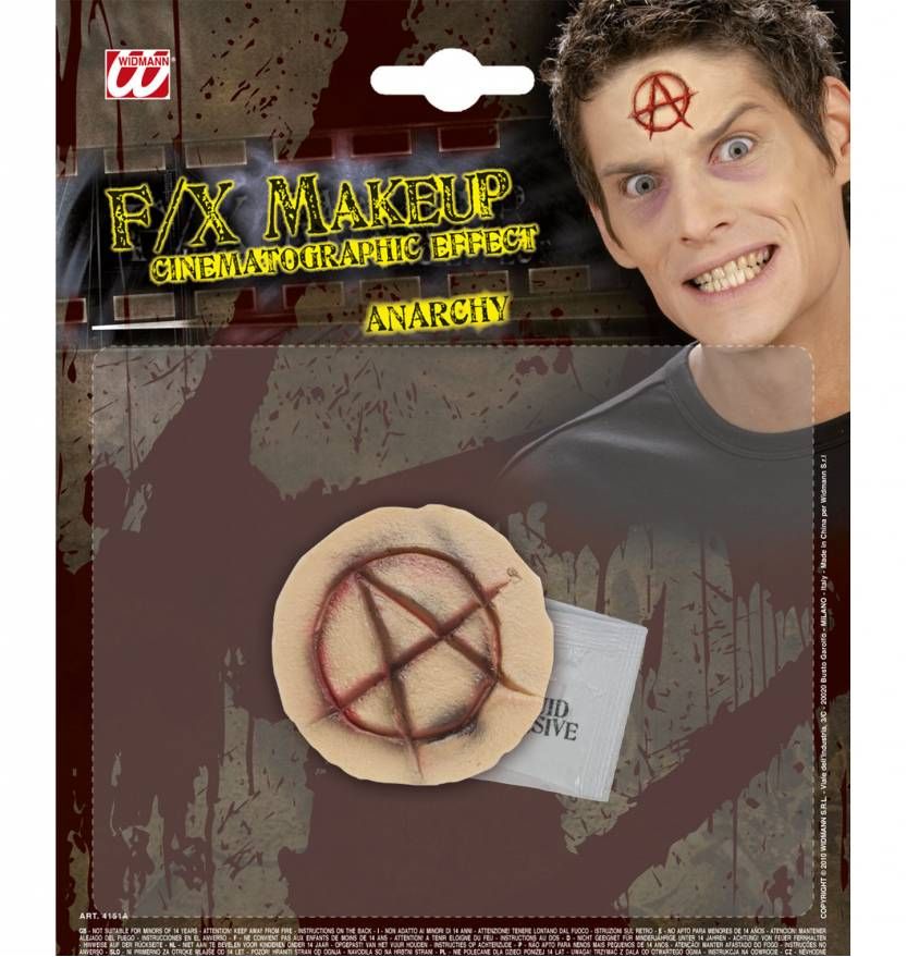 Dit is een Anarchie brandmerk voor op je huid voor Halloween waardoor het lijkt als of je vreselijk gewond bent. Deze nep wonden met lijm maken deel uit van een grote collectie grimeer spullen voor Halloween. In deze wonden collectie tref je allerlei nep brandwonden en nep kogelgaten aan om je Halloween look zo luguber mogelijk te maken.